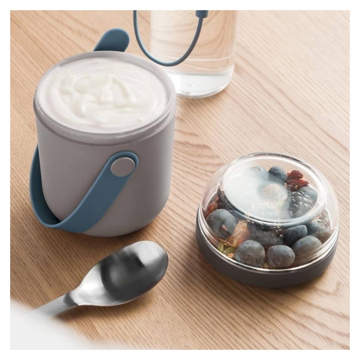 - promyšlený box na snídani, svačinu nebo oběd se dvěmi oddělenými nádobami