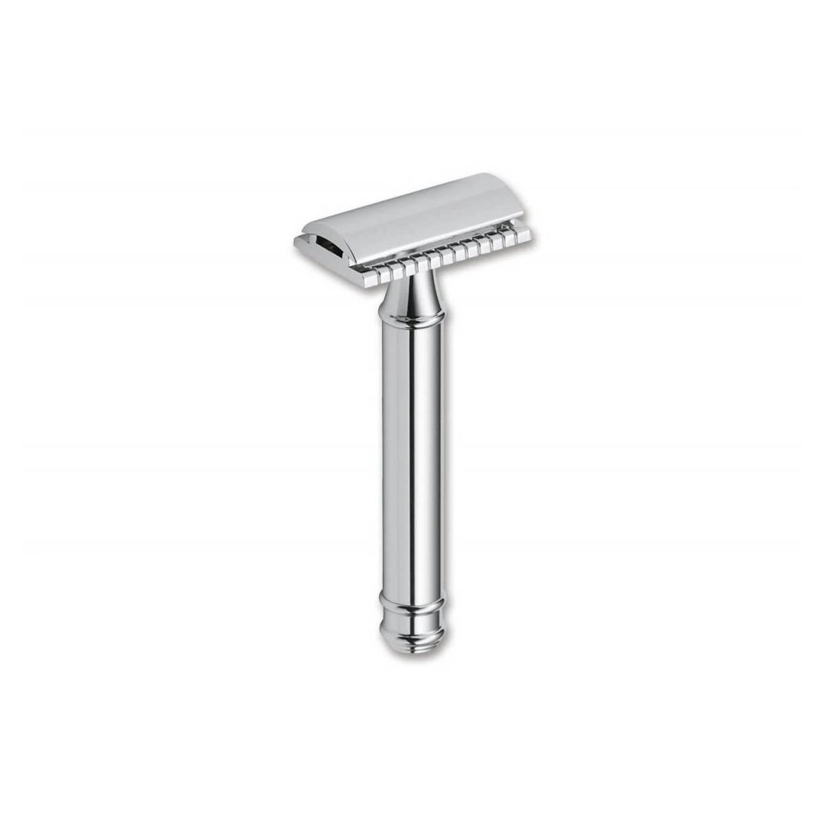 - Jedná se o tradiční bezpečnostní strojek s plně chromovaným celokovovým tělem.