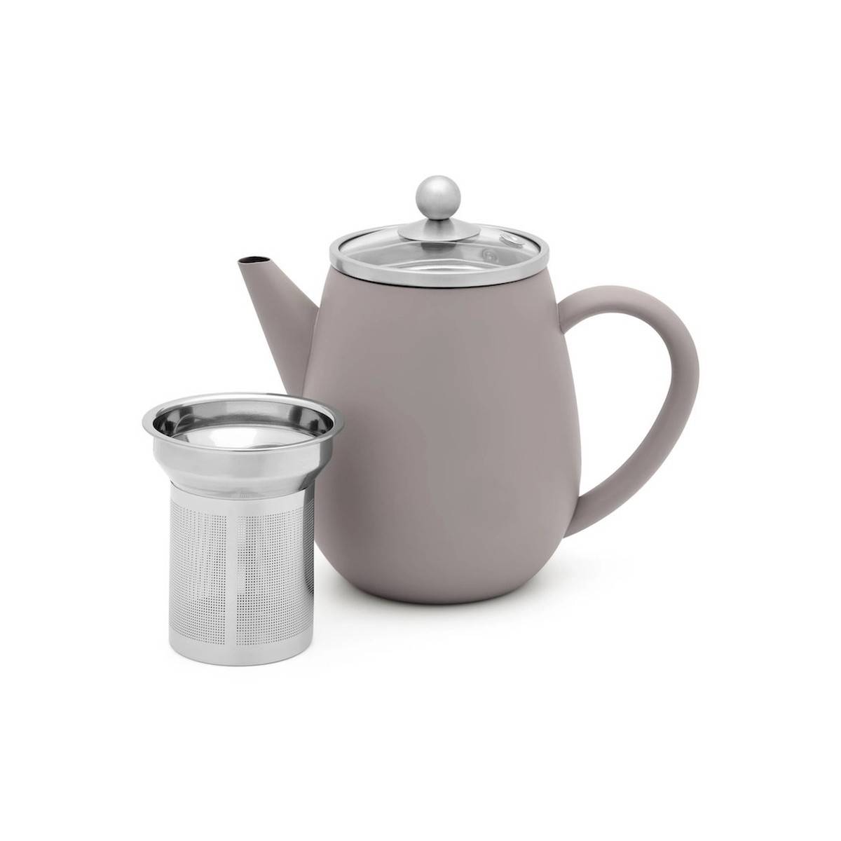 - Šedá čajová konvička Eva s kapacitou půl litru.