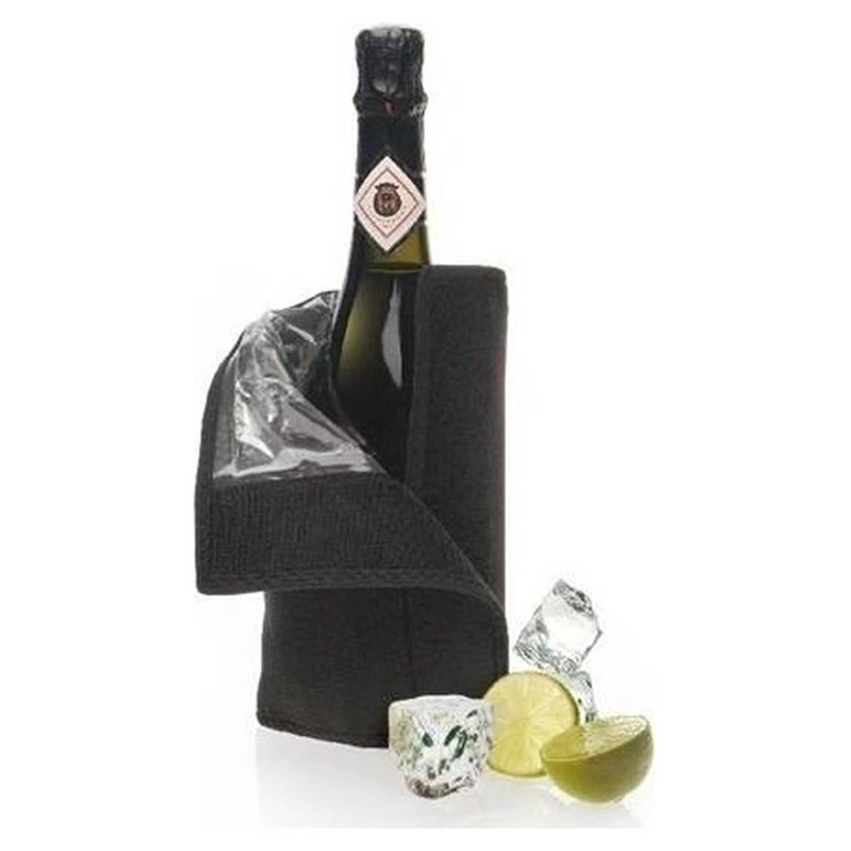 Chladící obal na víno v černém provedení. Poddajné a nastavitelné na různé rozměry lahví.