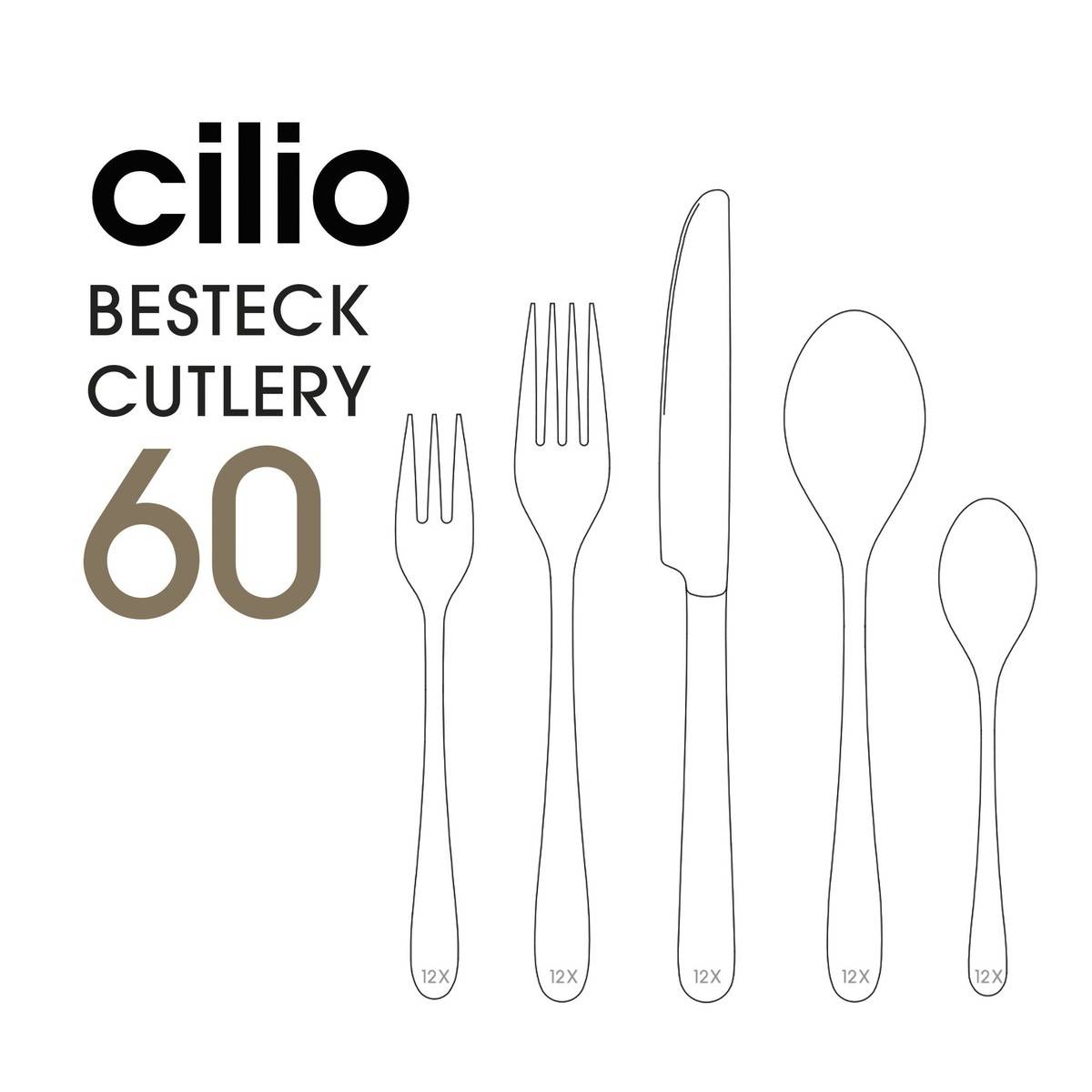 - Sada obsahuje po 12 kusech: nože, vidličky, lžíce, čajové lžičky a dezertní vidličky