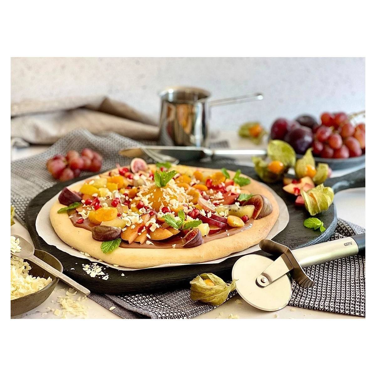 - Ostré kolečko z nerezové oceli zaručuje dokonale čistý a rovný řez bez potrhané oblohy.