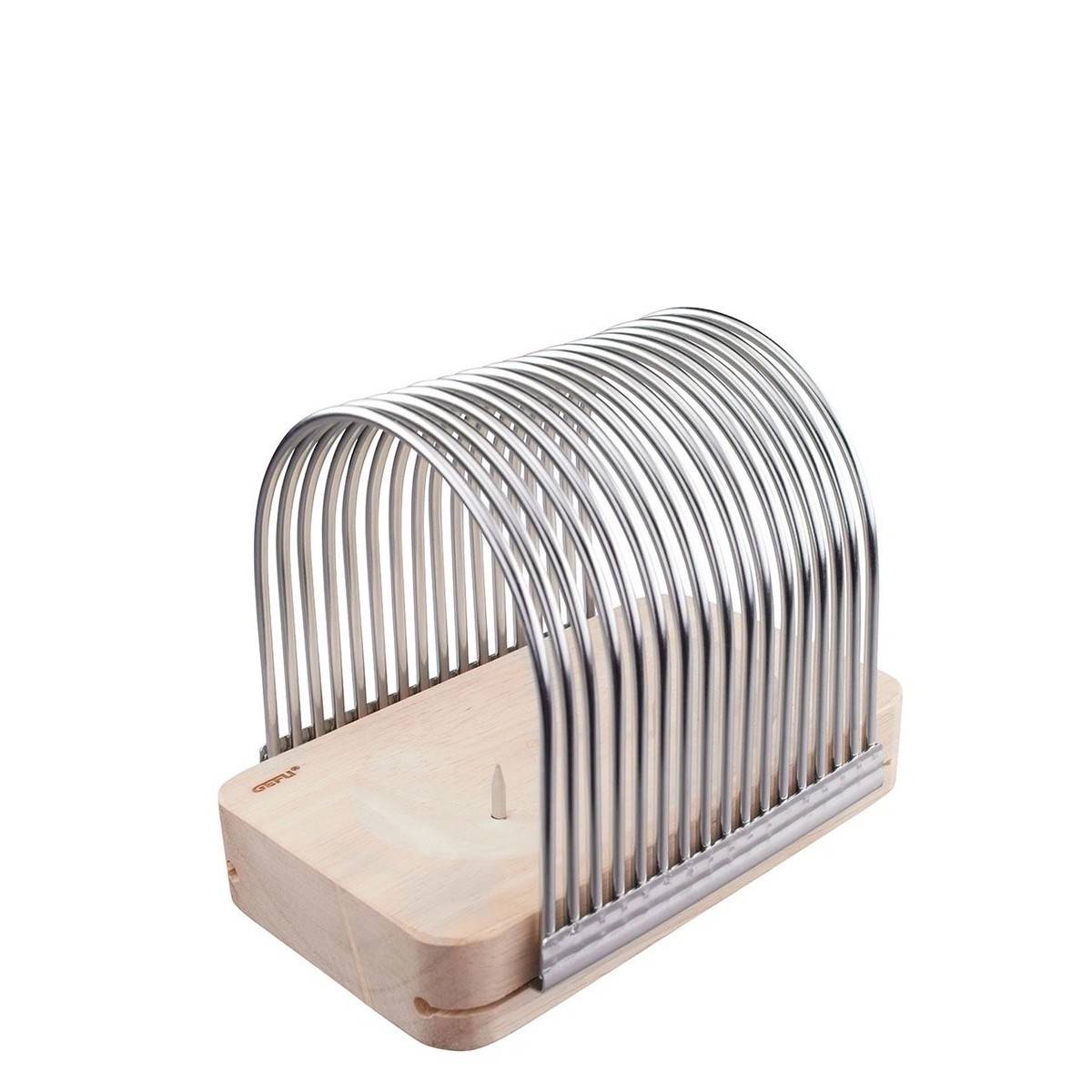 - Stabilní kovové oblouky zaručují bezpečné vedení nože a dokonale rovnoměrné řezy.