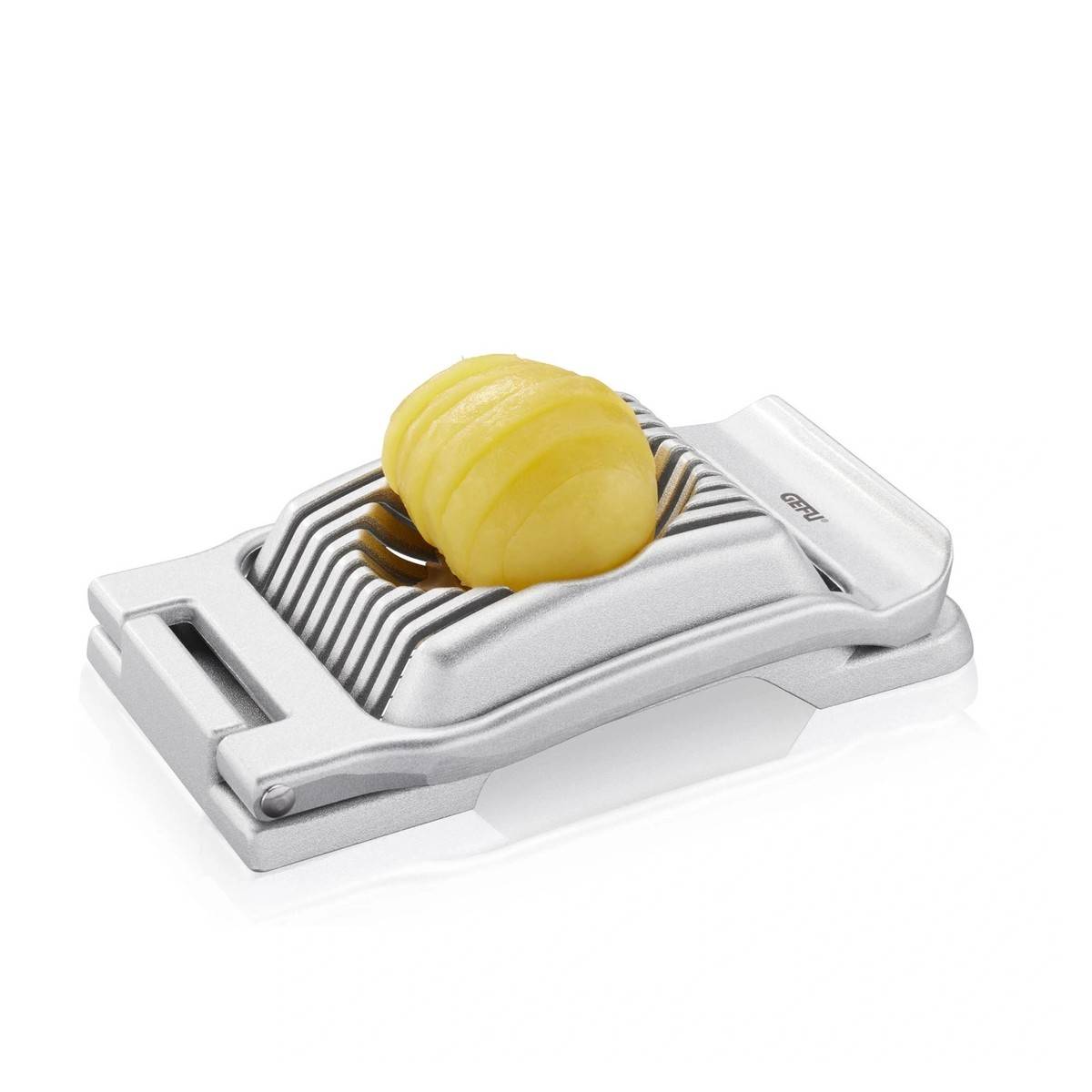 - Všestranný Eggi také krájí malé houby, vařené brambory nebo jahody