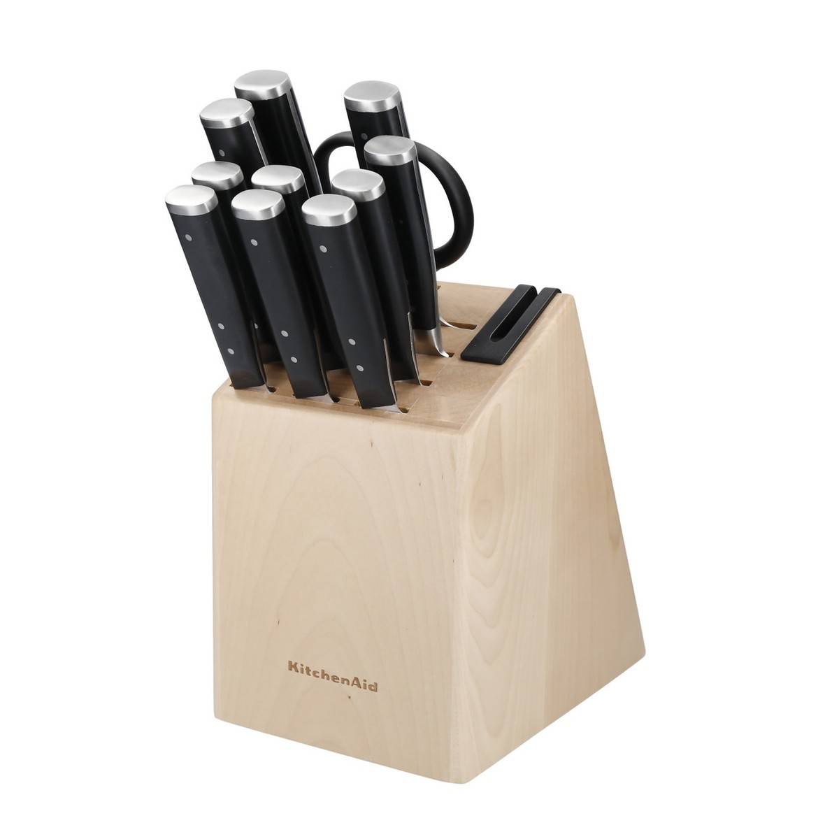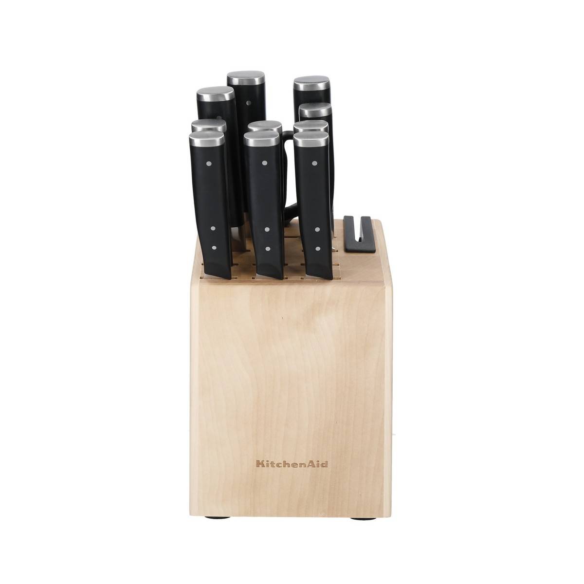 - Sada obsahuje: kuchařský nůž (20 cm), nůž na pečivo (13 cm), nůž Santoku (9 cm), nůž loupací (9 cm), 6 x steakový nůž a kuchyňské nůžky