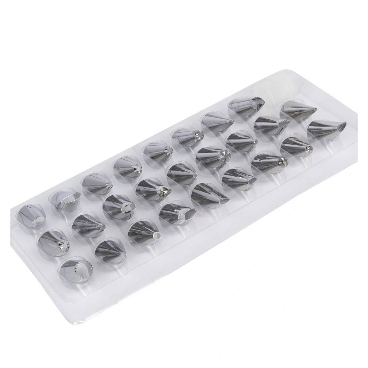- Sada obsahuje 26 nerezových trysek pro různé tvary