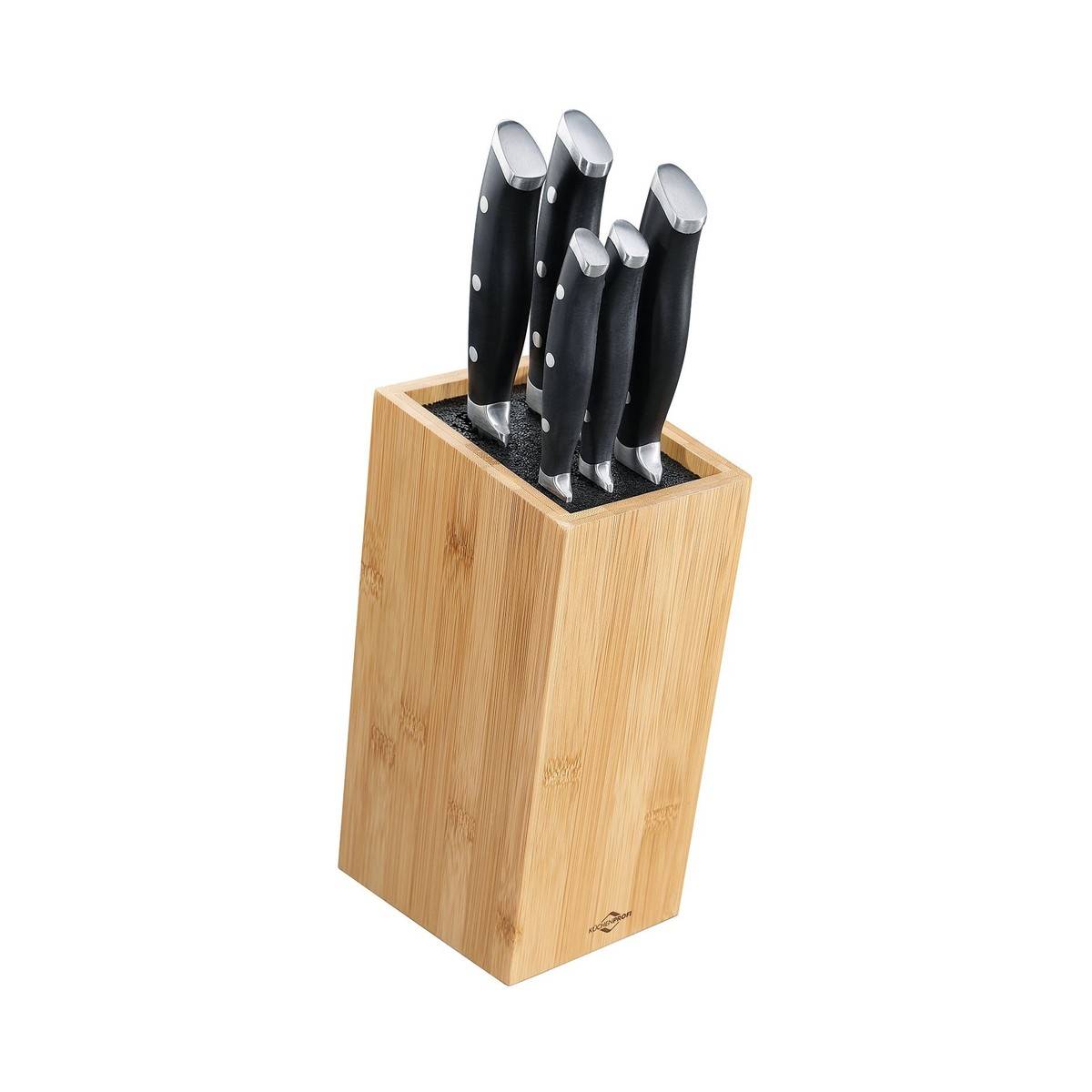 - Bambusový blok na nože, dodávaný s pěti noži: