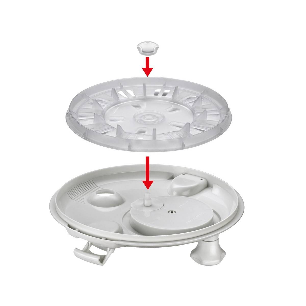 - Jednoduché použití: vložte čerstvě umytý salát do koše, umístěte jej do mísy, nasadíte víko a otáčením kliky salát jemně vysušíte