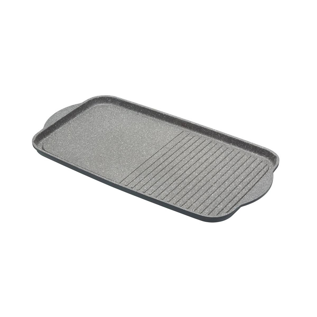 - Oboustranná, vroubkovaná strana na grilování, hladká na smažení.