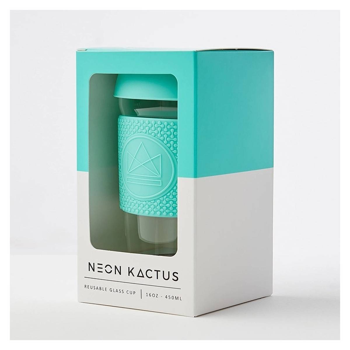 Neon Kactus Skleněný hrnek na kávu, L, 450 ml tyrkysový