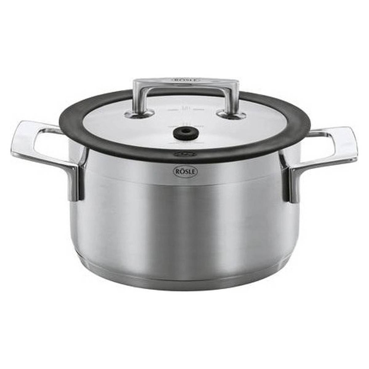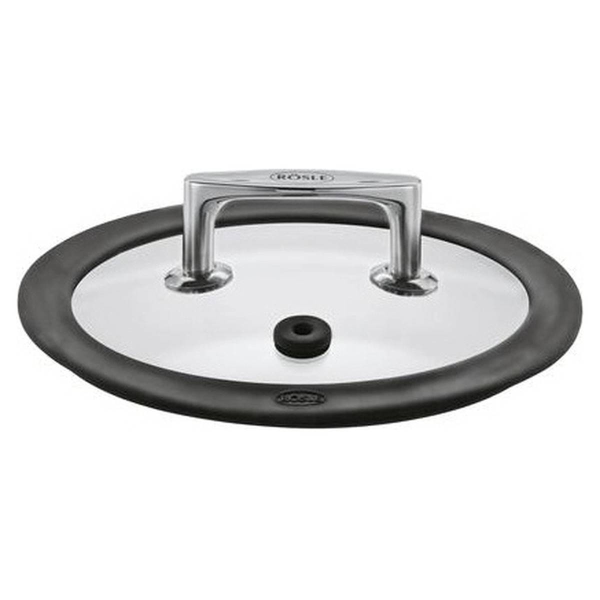 - Ø 24 cm, výška 13 cm, se skleněnou poklicí v kombinaci se silikonem a nerezem