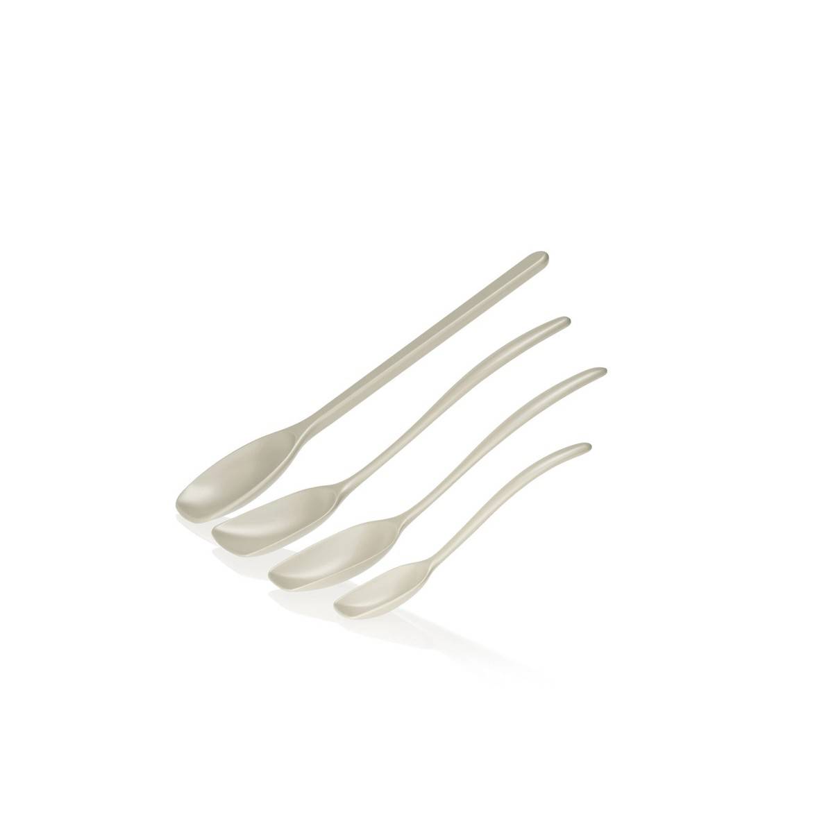 - Kolekce čtyř jídelních nástrojů v zemitě hnědém odstínu Classic Humus.