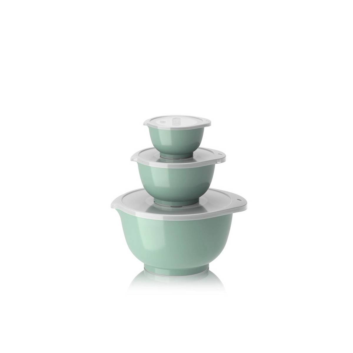 - Třídílná souprava kuchyňských mís v uklidňujícím severském zeleném odstínu.