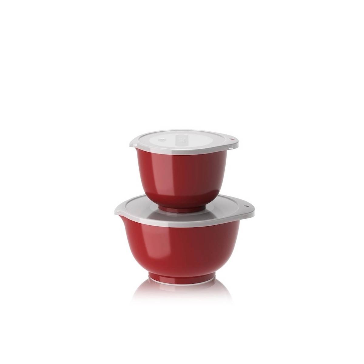 - Dvojice ikonických míchacích nádob Margrethe v ohnivě červeném odstínu.