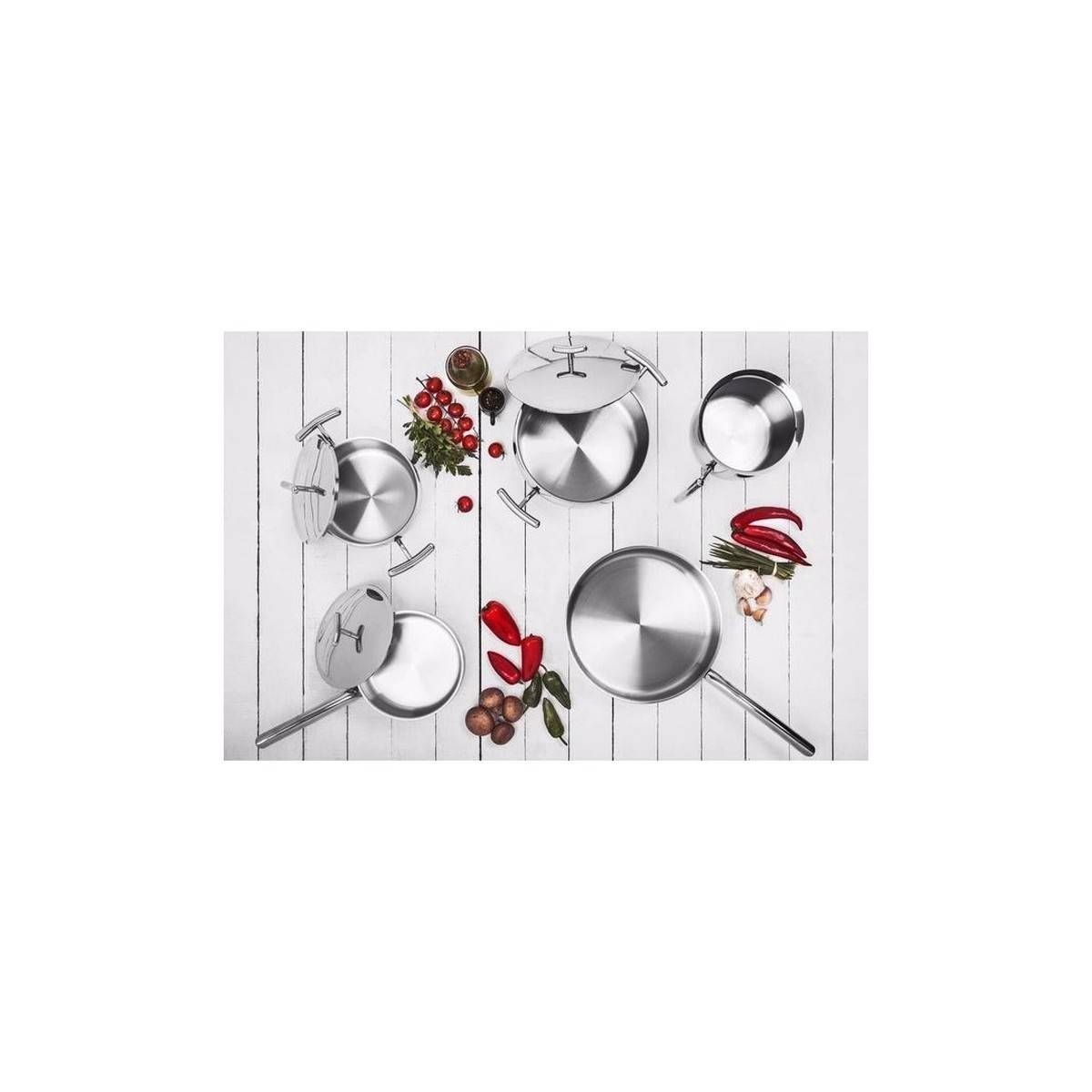 - Součástí je poklice z nerezové oceli se stejným stylovým úchytem.