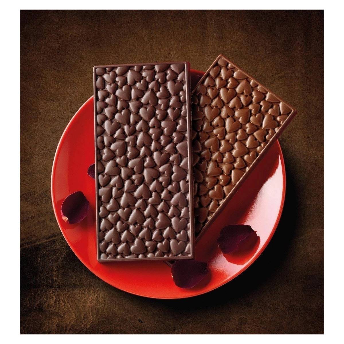 Silikonová forma na výrobu čokoládových tabulek se srdíčka. To je dobrá pomůcka pro výrobu domácí tabulkové čokolády. Rozměr:15,5 x 7,6 x 0,85 cm Objem: 85 ml.