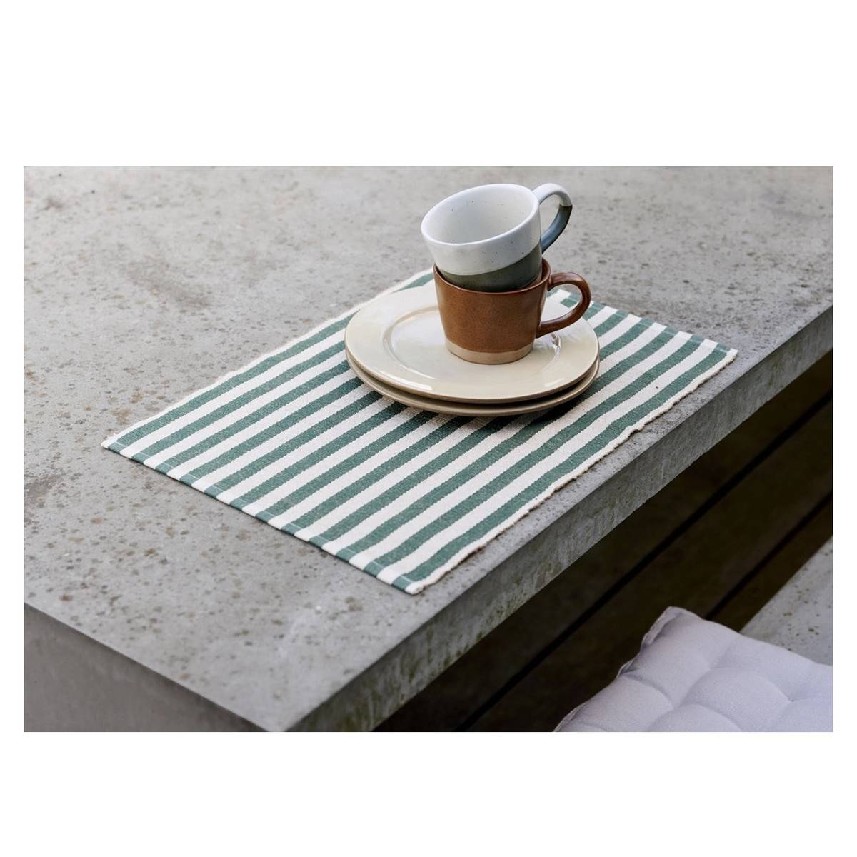 - Design se vyznačuje výrazným pruhovaným motivem Statement Stripe v sytých zelených tónech.