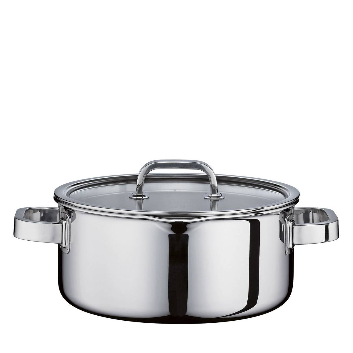 - Hrnec z 5vrstvého materiálu – vnější vrstva z indukčně kompatibilní nerezové oceli 18/0, vnitřní vrstva z nerezové oceli 18/10 a třívrstvé jádro z hliníku pro optimální rozvod tepla.