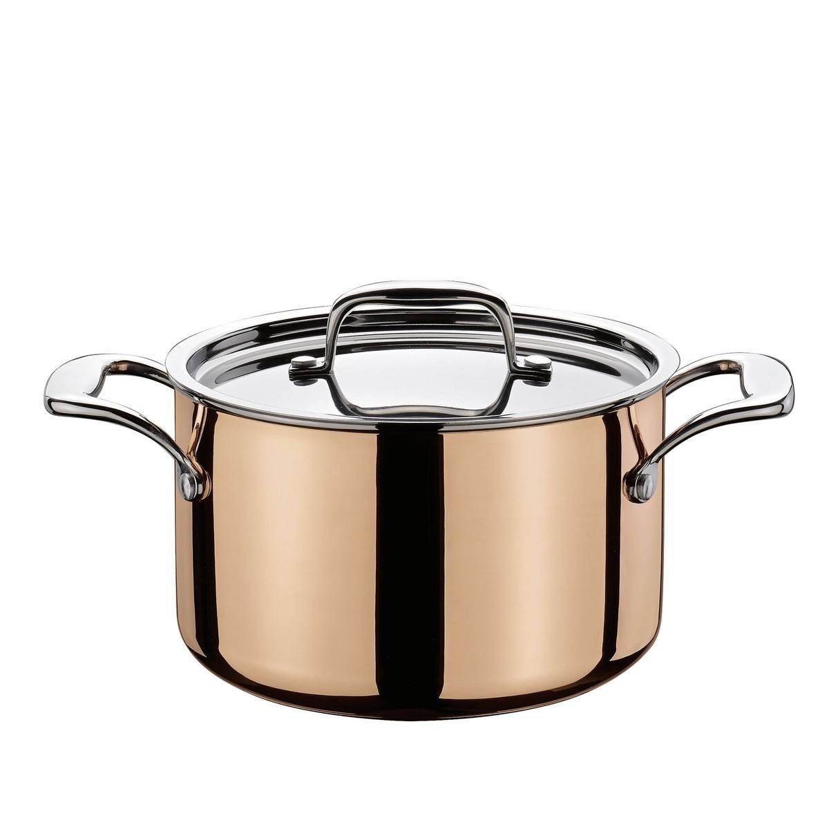- 5vrstvé materiálové provedení: vnější vrstva z čisté mědi, vnitřní vrstva z nerezové oceli 18/10, trojitý hliníkový jádrový mezivrstva
