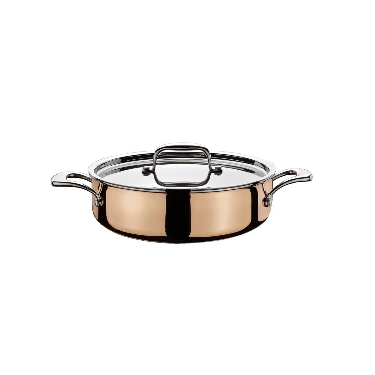 - 5vrstvý materiál: vnější vrstva z čisté mědi, vnitřní vrstva z nerezové oceli 18/10, třívrstvé hliníkové jádro