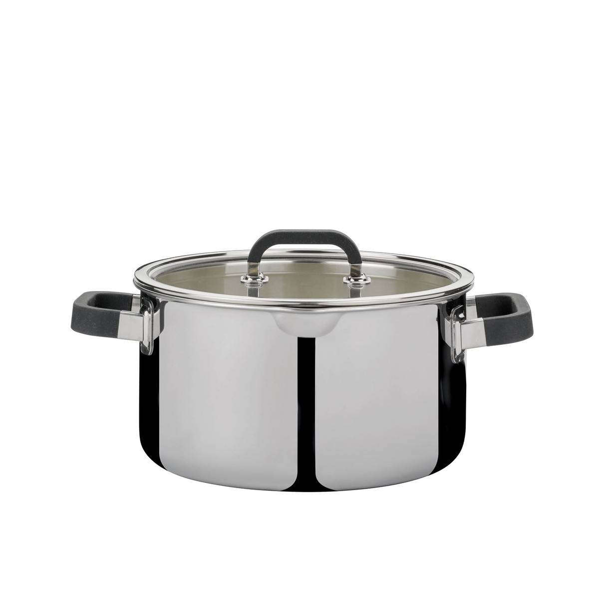 - Součástí je skleněná poklice umožňující úsporné vaření s kontrolou obsahu