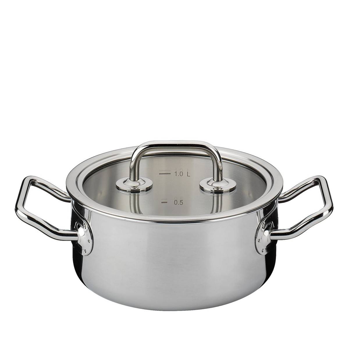 - Vyrobeno z osvědčeného vícevrstvého materiálu: vnější vrstva z nerezové oceli 18/0 vhodné pro indukci, vnitřní vrstva z nerezové oceli 18/10 a hliníkové jádro pro optimální rozvod tepla