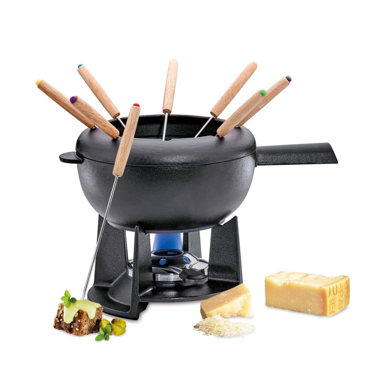 - Odnímatelný ochranný kryt proti rozstřiku udrží fondue vidličky bezpečně na místě.