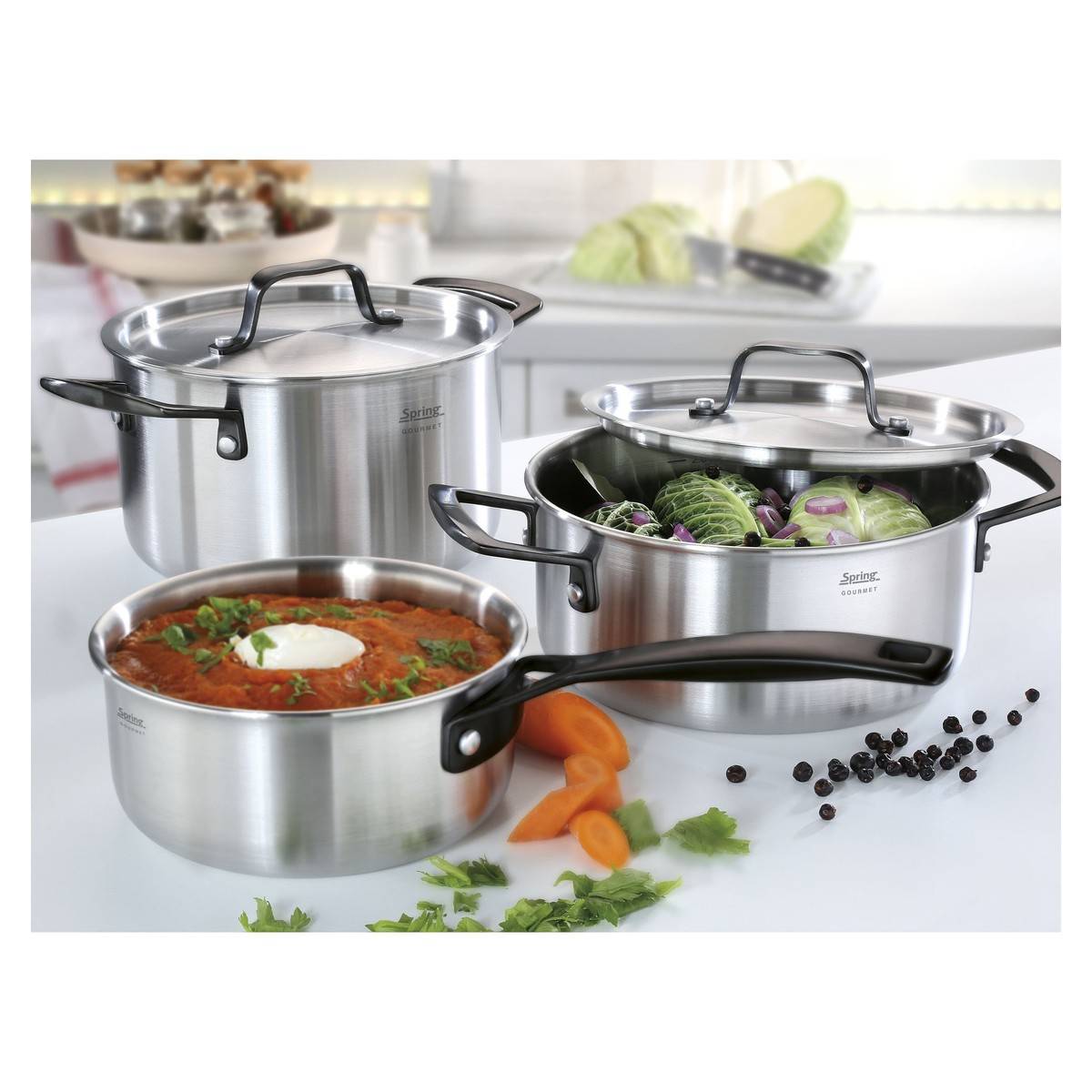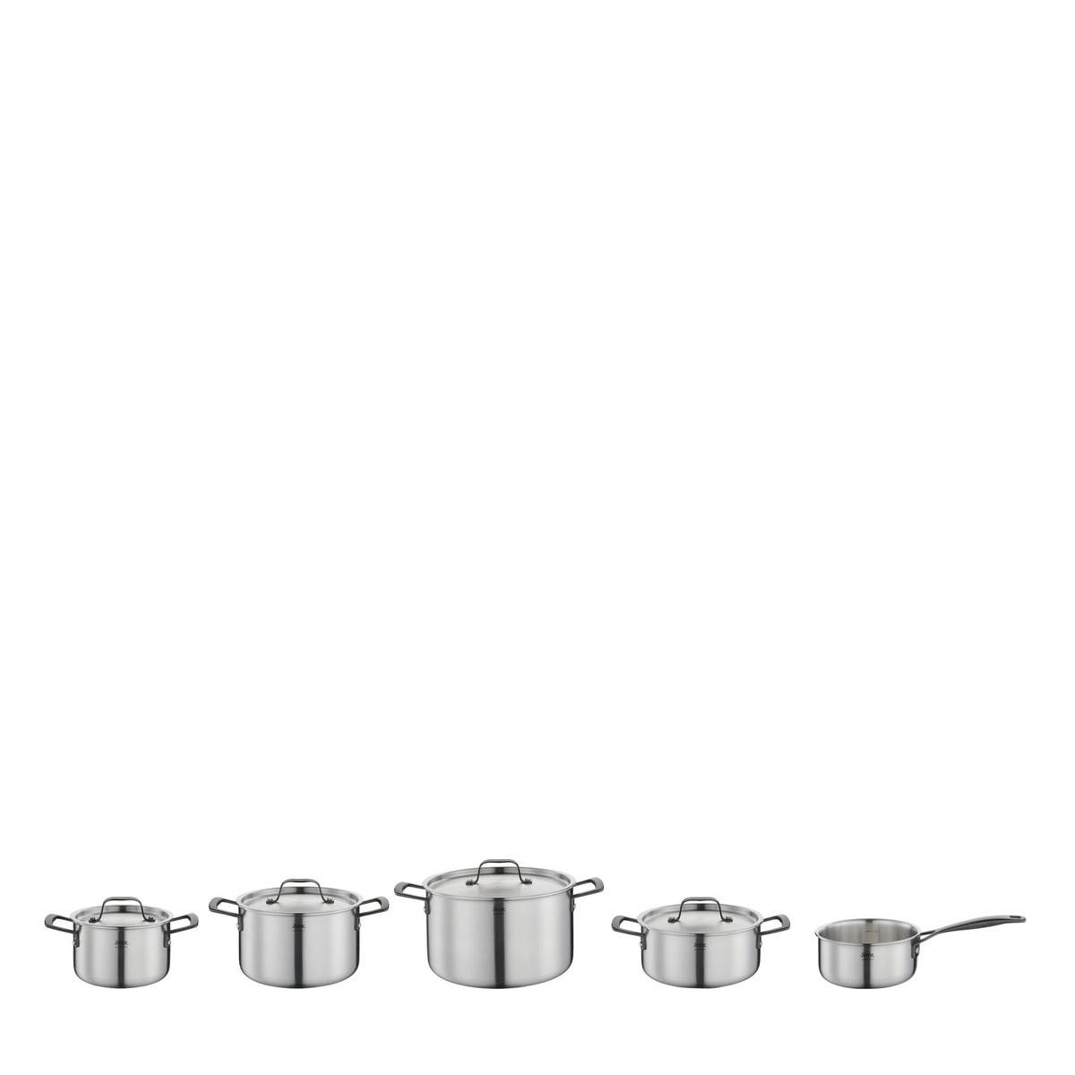 - 5vrstvé provedení pro optimální rozvod tepla: vnější vrstva z indukčně vhodné nerezové oceli 18/0, vnitřní vrstva z nerezové oceli 18/10 a trojitý hliníkový jádrový plášť