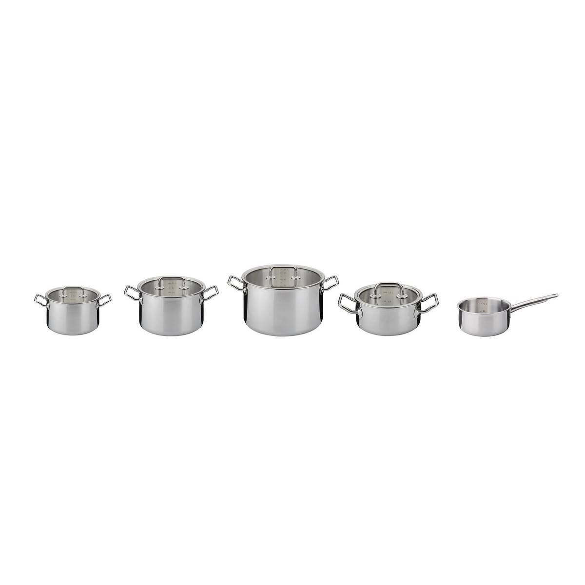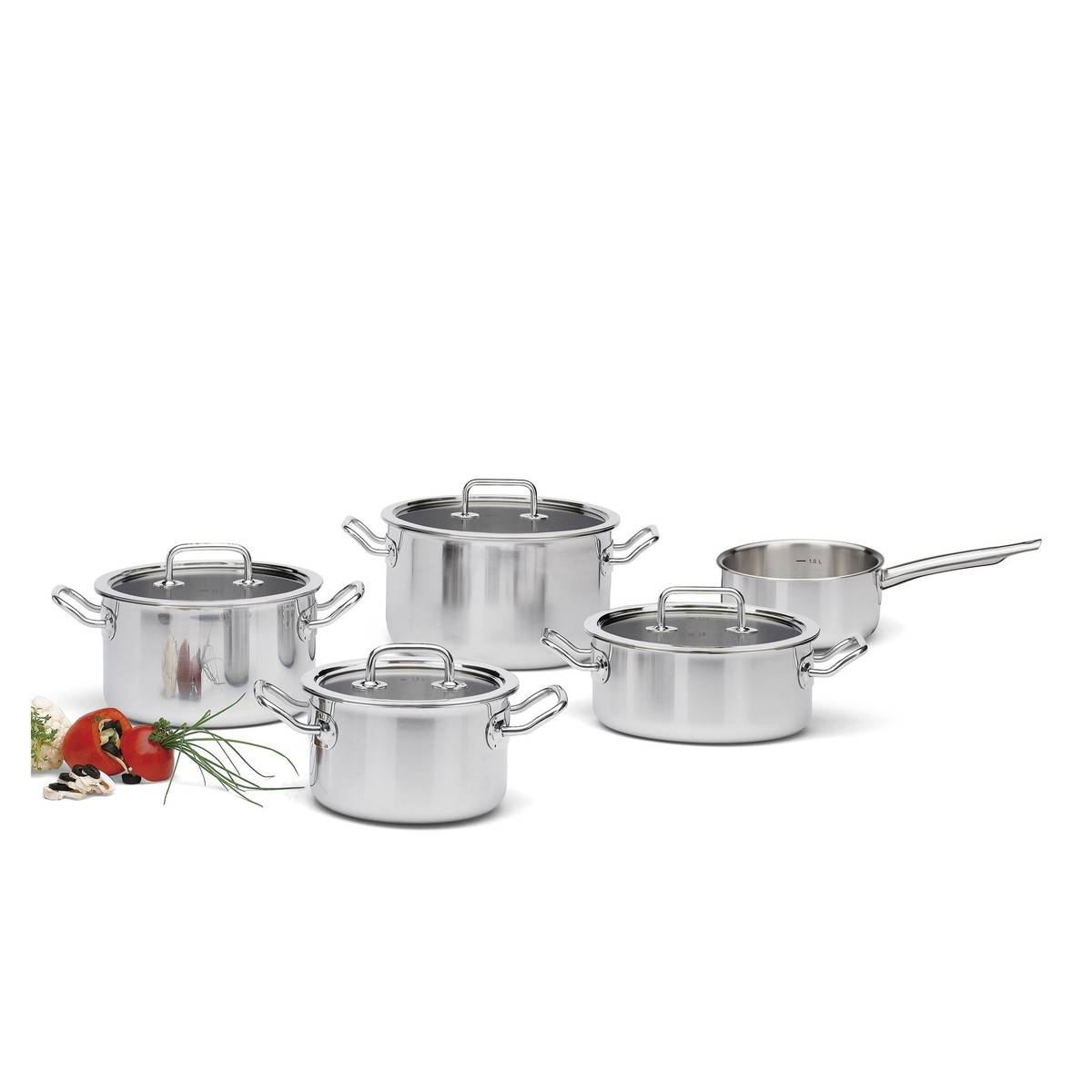 - Osvědčený vícevrstvý materiál: vnější vrstva z indukčně vhodné nerezové oceli 18/0, vnitřní vrstva z nerezové oceli 18/10 a hliníkové jádro pro dokonalý rozvod tepla.