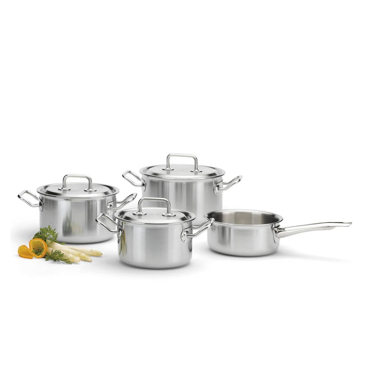 - 5vrstvé materiálové provedení: vnější vrstva z indukčně kompatibilní nerezové oceli 18/0, vnitřní vrstva z nerezové oceli 18/10 a trojitý hliníkový jádrový vklad