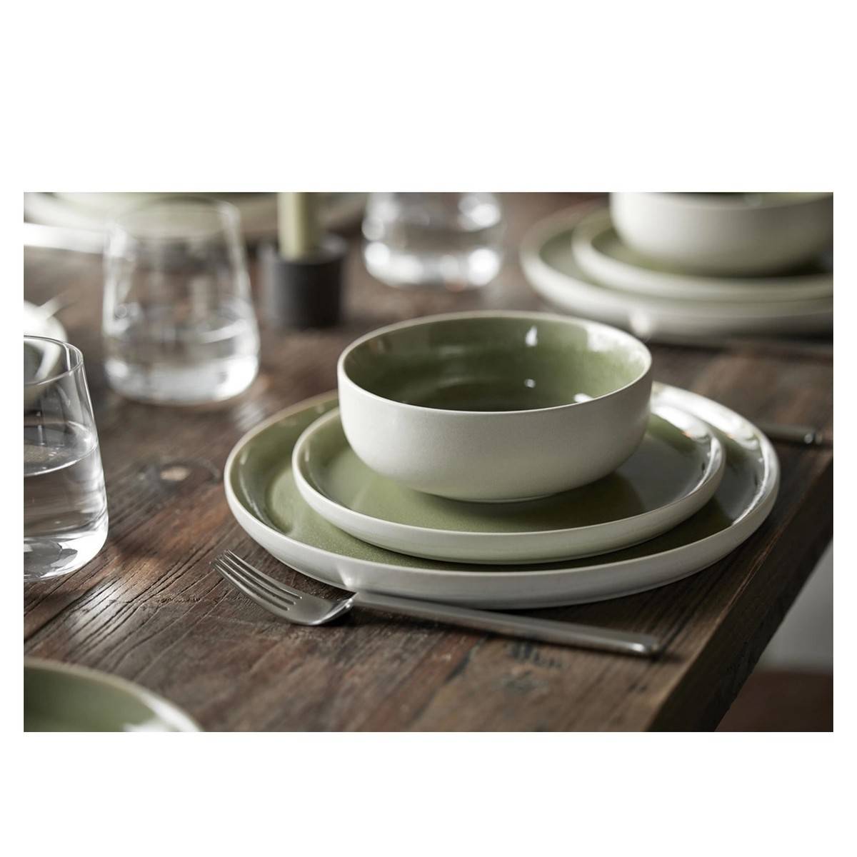 - Kameninová servírovací mísa z kolekce North v barevné kombinaci bílé a mechově zelené.