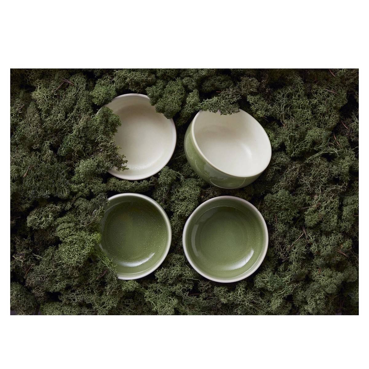 - Misky zdobí reaktivní glazura v odstínu Moss mix, která vytváří krásné vzory inspirované přírodními strukturami.