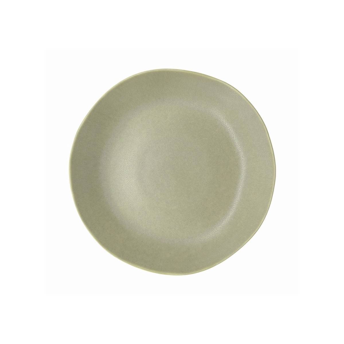 - Kulatý mělký talíř vyrobený z robustní kameniny.