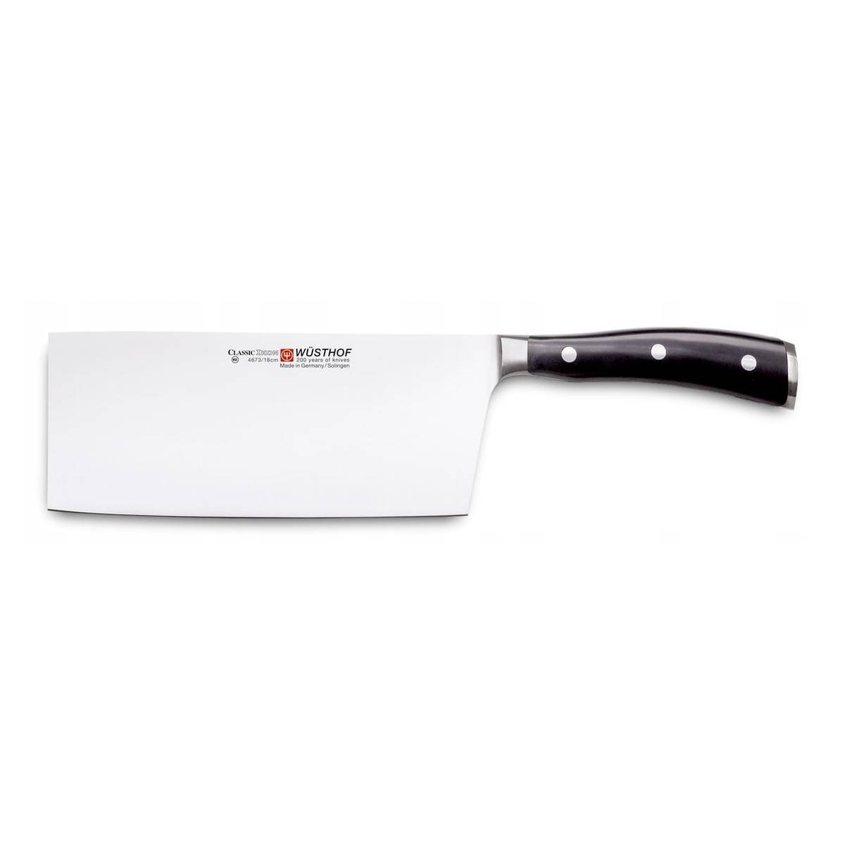 Čínský kuchařský nůž je vhodný pro krájení potravin na velmi tenké plátky a nudličky - Wüsthof Dreizack Solingen.
