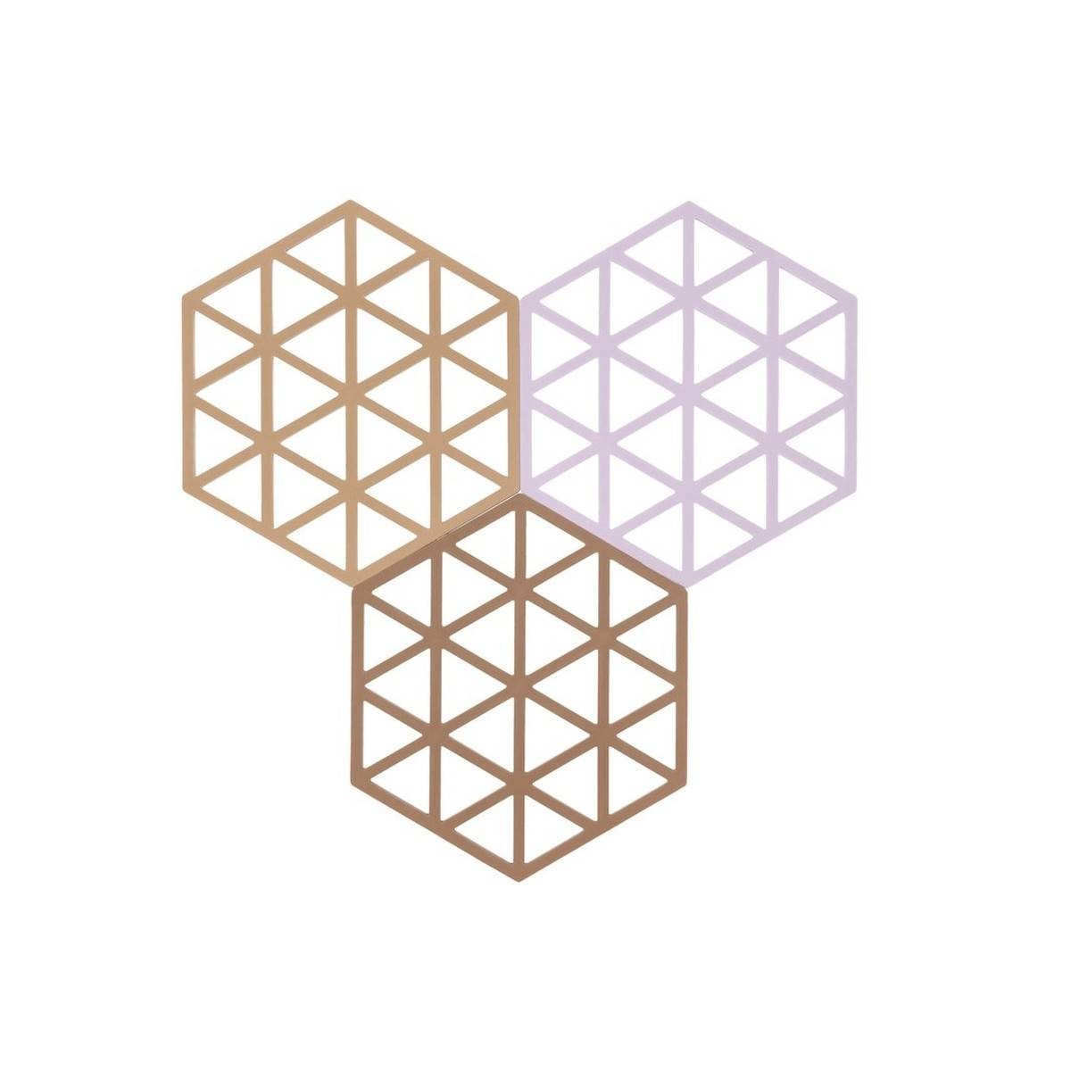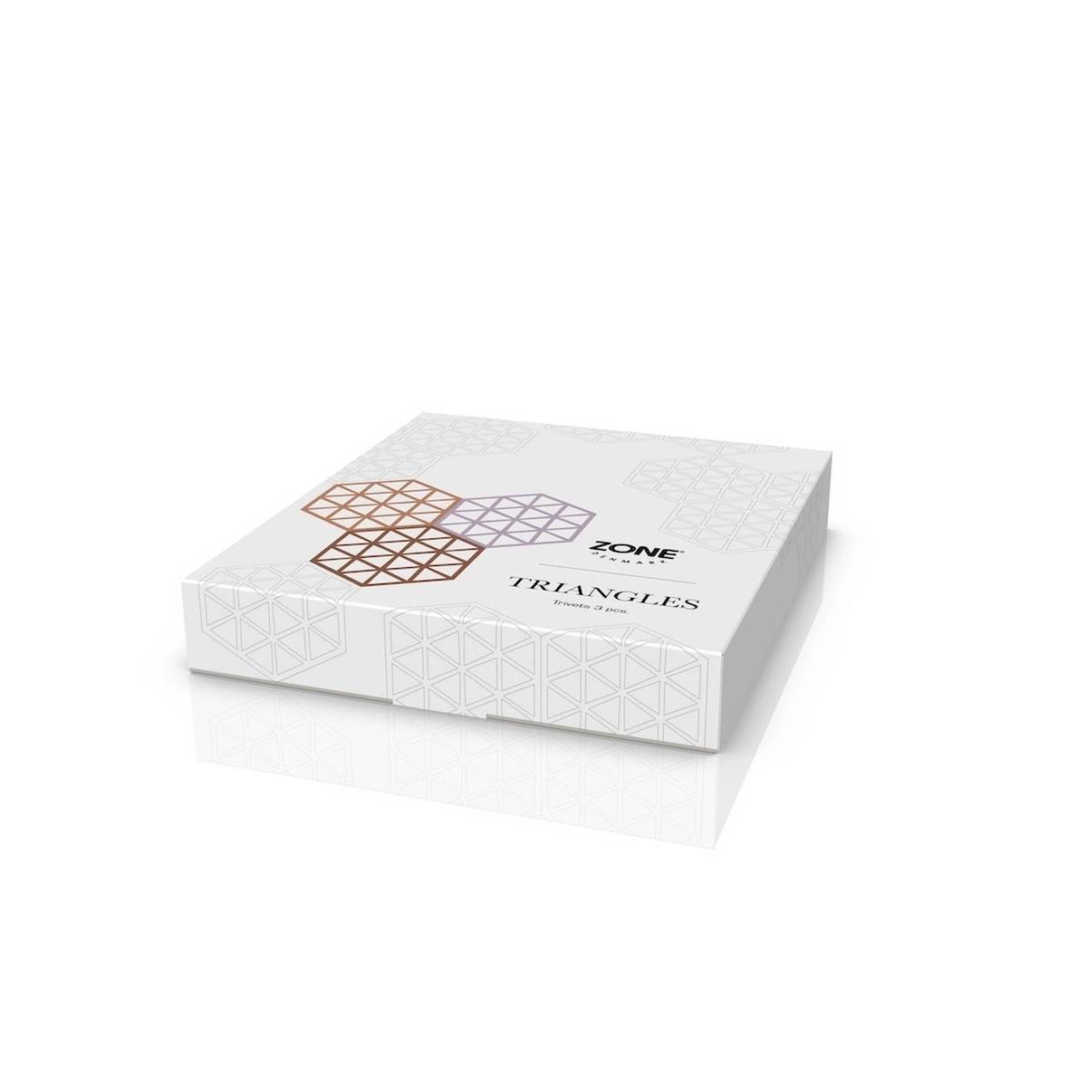 - Každá podložka má originální trojúhelníkový tvar a je vyrobena z odolného, žáruvzdorného silikonu.